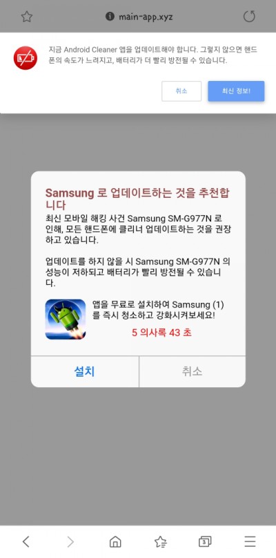 제가 캡처를 못했는데 처음 짤 때는 서버에 어떻게든 떠서 위험한 사이트라고 뜨는데