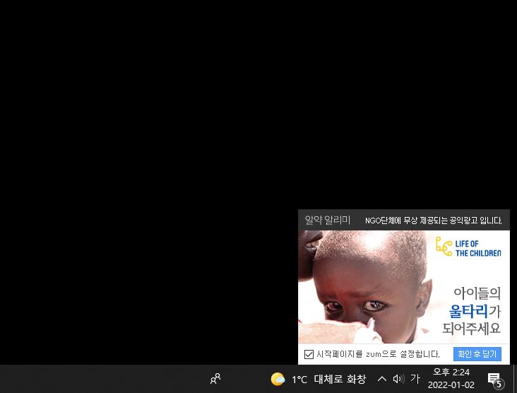 컴퓨터 시간을 보면 2시 14분에 광고가 떴는데.. 지금 10분이 지난 2시 24분에 광고가 또 뜨네요. 심각하네요. 끄는 방법을 안내해드리겠습니다.