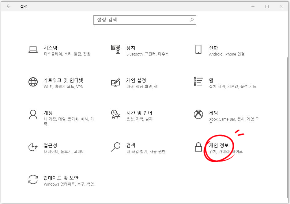 다시 설정창에서 개인정보를 클릭해주세요