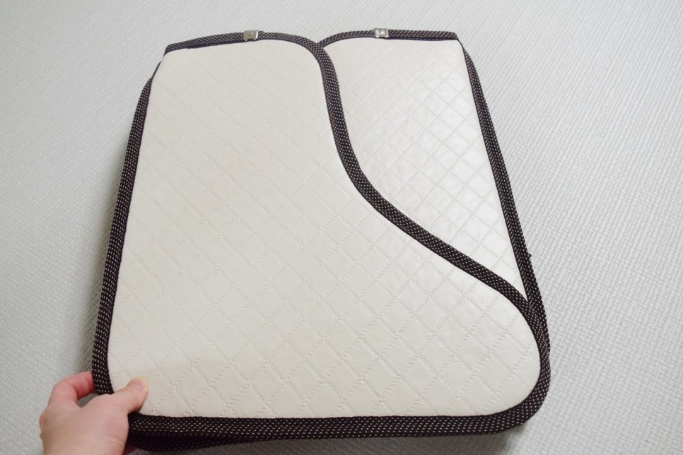 표면은 퀼팅방식으로 방수처리 되어있어 오염물질이 묻었을때 물티슈로 닦아주어 잘 제거되었습니다.