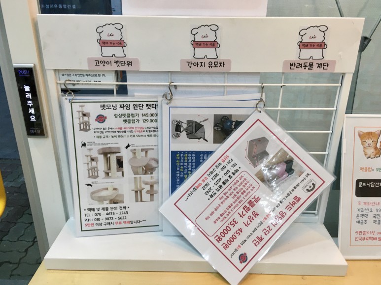 사람에게 물어봐야 될 게 있는데 그게 고양이 캣타워, 강아지 유모차, 애견 계단인데 안내가 잘 돼 있어서 이렇게 준비하고 있어모르면 전화해서 물어봐도 돼.