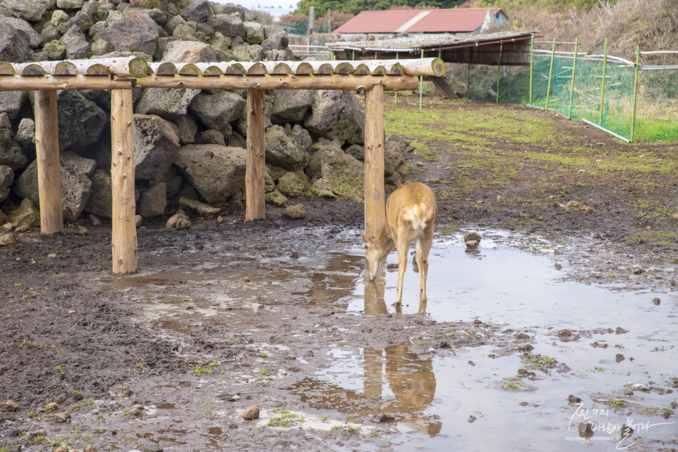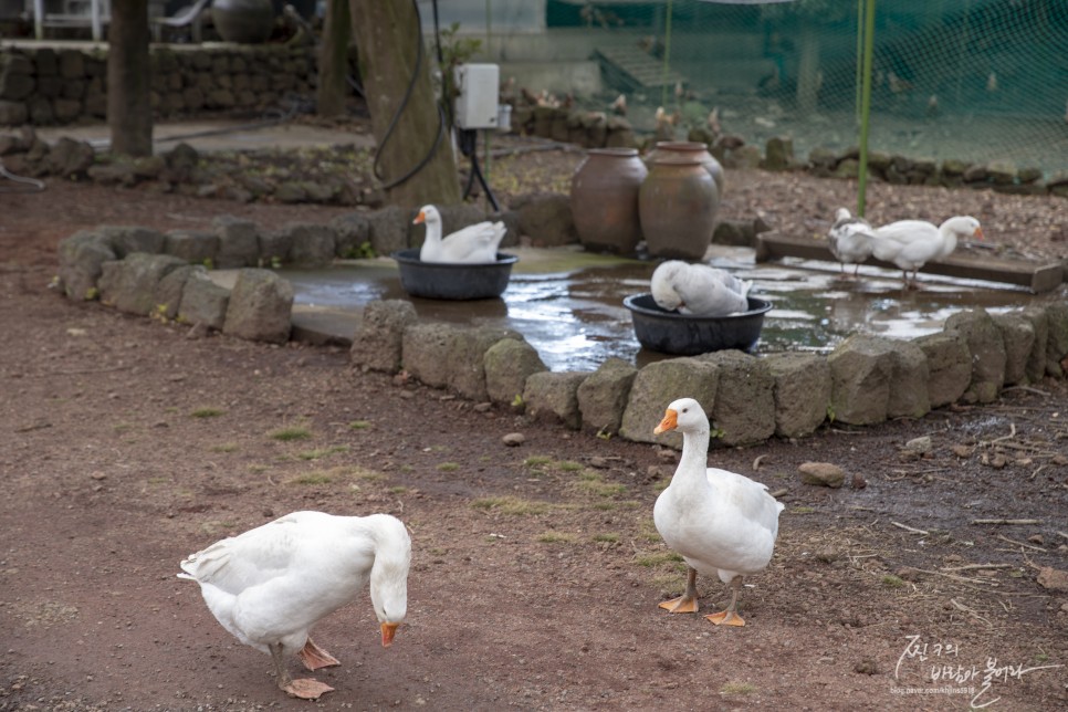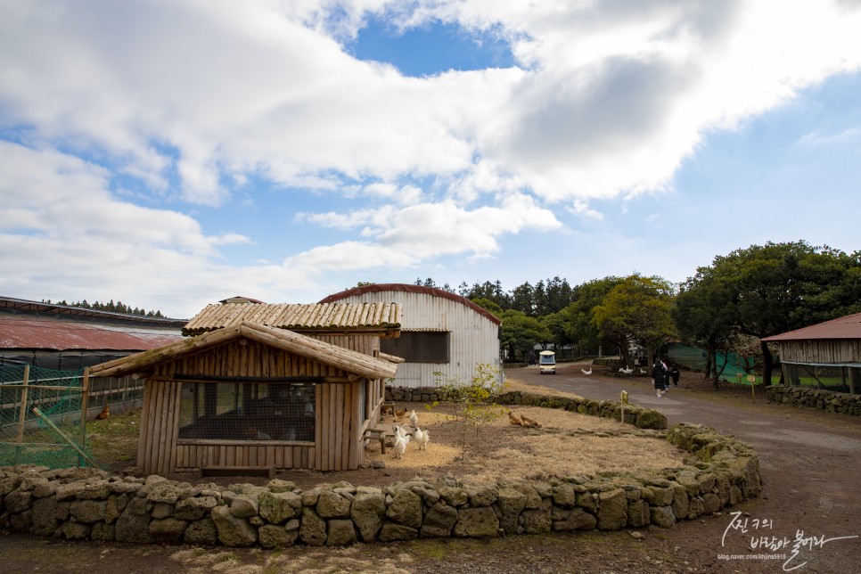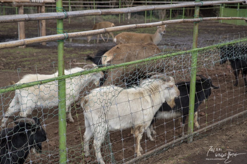 제주도의 청초밭 위쪽을 보고 동물들에게 먹이주기 체험을 할 수 있는 곳을 가보았는데 동물의 집이 있었는데 자유롭게 방목을 하는 형태로 동물들이 있었고 입구쪽에는 닭들이 안쪽에는 오리, 염소, 사슴 등이 있었다.