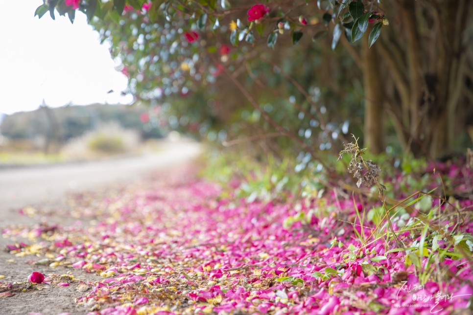 마지막으로 카페 옆에 동백나무 길을 갔는데 처음에 갔던 곳보다 더 많은 동백꽃이 있고 길도 예쁘게 만들어져 있어서 사진 찍기 정말 좋은 곳이었다.