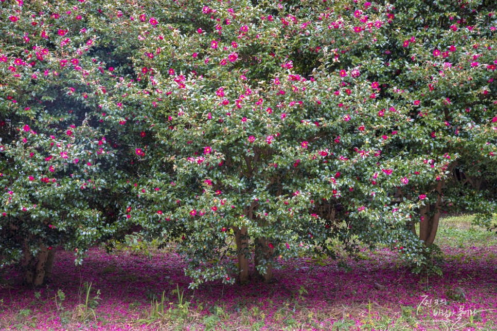 다른 곳은 동백나무가 한 그루 한 그루 심어져 있었는데 이곳은 빽빽하게 심어져 있어서 뭔가 커다란 동백나무를 보는 느낌이었다.