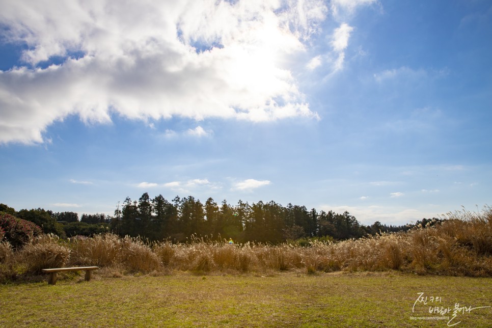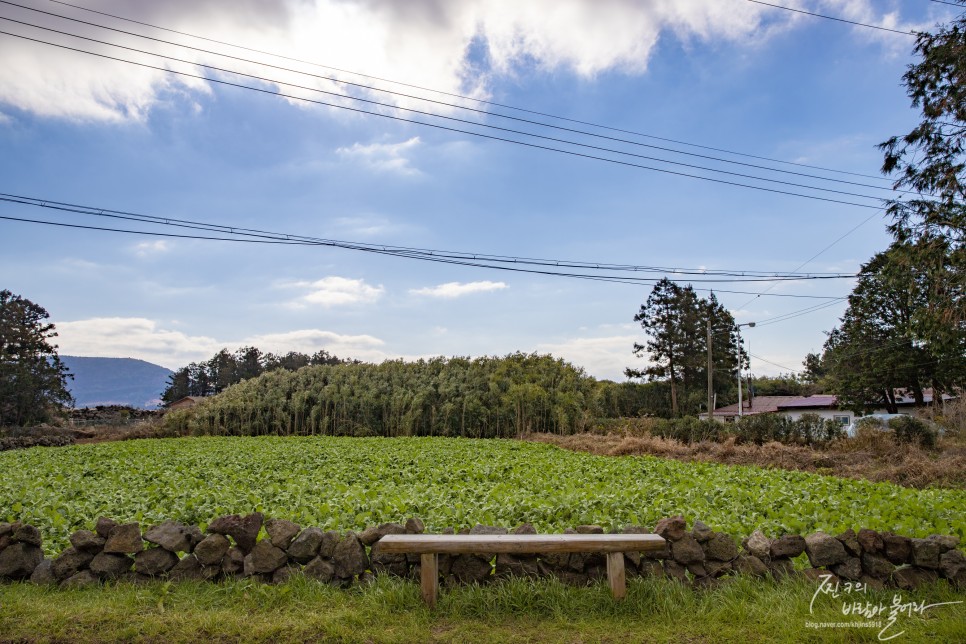 표선면의 작은 마을을 지나 농장 입구를 지나면 긴 삼나무 숲길이 나오고, 길을 따라 걷다 보면 주차장이 있는 공간이 나온다.