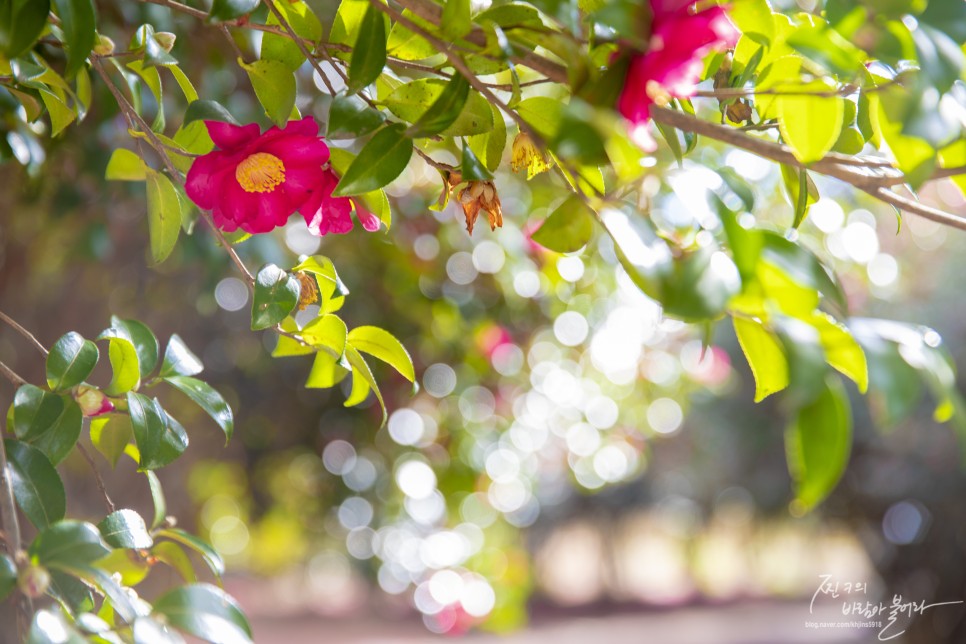 길도 예쁘게 꾸며져 있었고 동백나무도 많이 있었는데 햇살이 예쁘게 떨어져야 빛나는 동백나무를 찍을 수 있었다.
