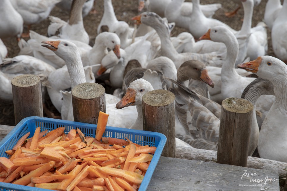 염소와 오리들에게도 먹이를 줄 수 있었지만 앞쪽에 당근이 있었기 때문에 따로 먹이를 주고 사지 않아도 되었다