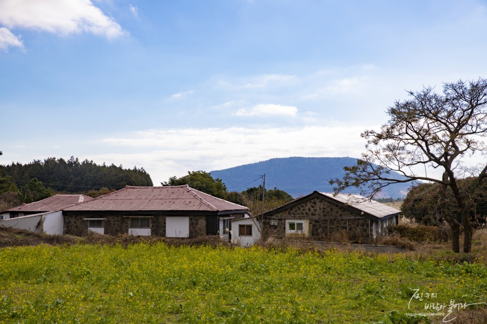 겨울이었는데 이제 막 피어나고 있는 유채꽃밭도 작았지만 유채꽃 뒤로 오래된 집들이 있어서 분위기가 좋았다.
