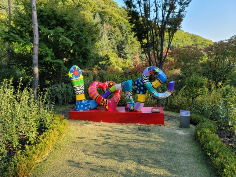 곳곳에 조형물도 보이더라고요이 근처에는 무궁화 꽃이 많았어요.아직 자고 있는 중인것 같다...?!