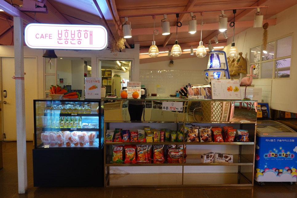 참고로 선우프랜드 안에는 핑크핑크색 카페도 있어서 커피 한잔을 즐길 수 있습니다.판매하던 메뉴도 풍부하고 과자도 많아서 은근히 골라먹는 재미도 쏠쏠했어요.