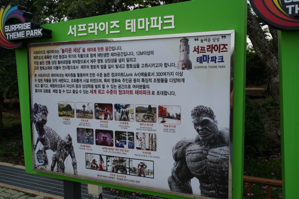 마지막으로 방문한 제주도 동코스는 서프라이즈 테마파크에서 멀지 않은 곳에 있었습니다.덕분에 장시간 자동차로 이동하지 않고 바로 들를 수 있었는데, 정크 아트를 주제로 내부가 장식되어 있다고 하네요.