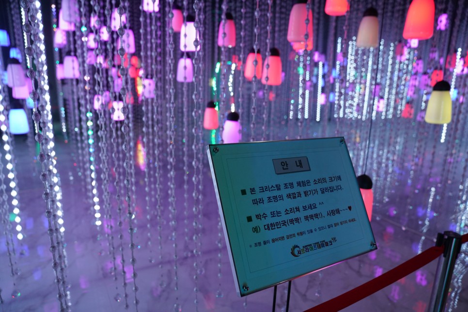 또한 내부에는 소리에 따라 조명이 바뀌는 신비로운 공간도 있었습니다.박수의 강도에 따라 여러 모습이 달라지는 게 얼마나 신기했는지 아이들이 와서 체험하니 더 기분이 좋은 것 같았어요.