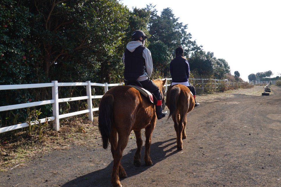 예상보다 더 짜릿했던 승마는 생각보다 어렵지 않고 만족스러웠습니다만일의 사고에 대비하여 헬멧이나 장비 등도 착용하고 있기 때문에 겁이 많은 친구도 안심하고 타는 모습이었어요.