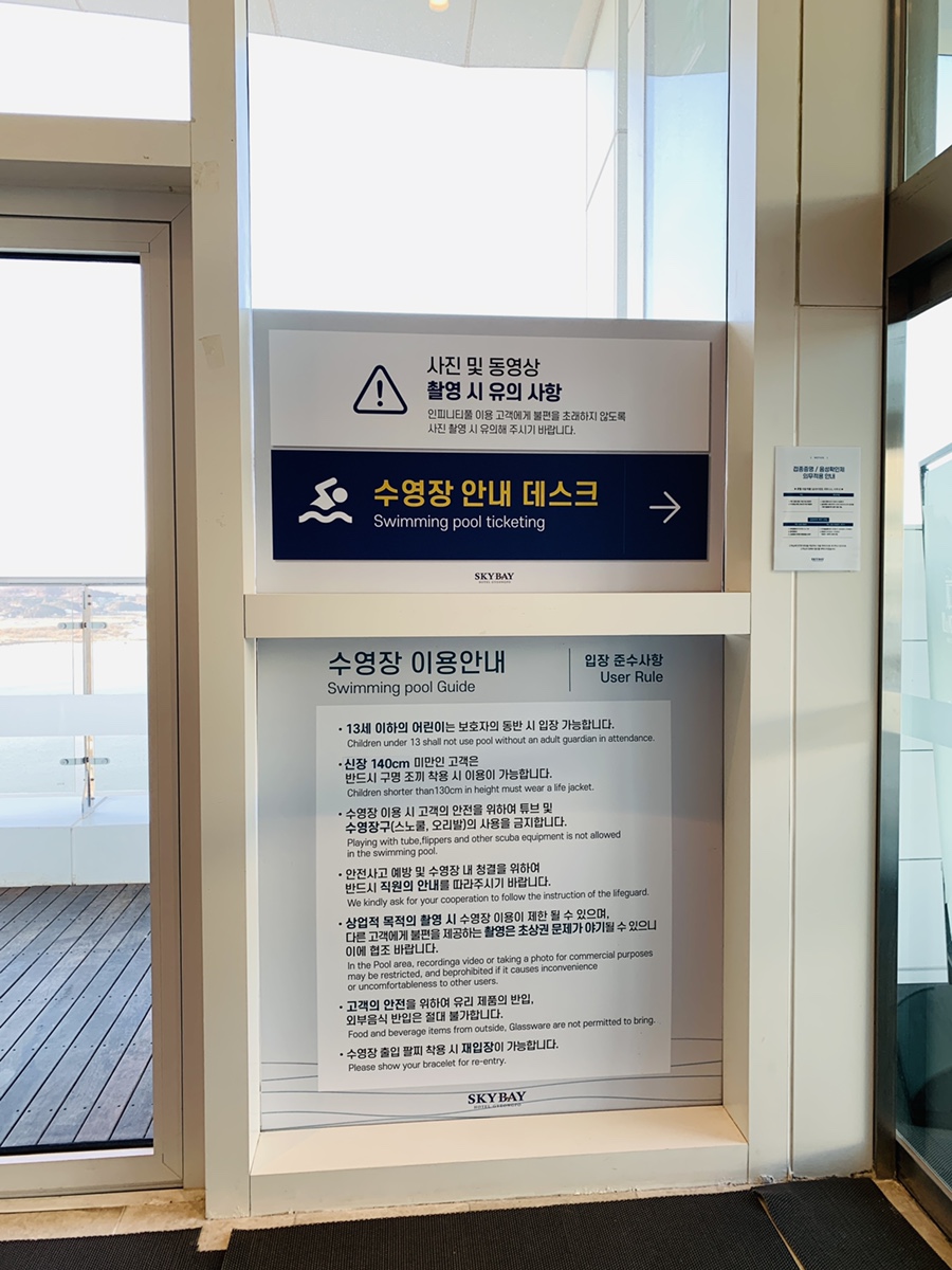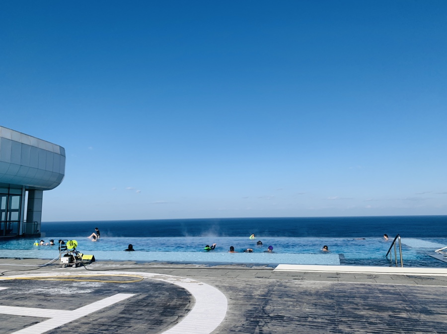 수영장은 20층까지 운영하며 7시부터 9시까지 운영한다.내가 갔을 때 기준) 그리고 수영장 입구에서 하면 된다.타월이 두 장 제공되다.큰~ 거로