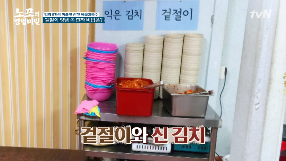 그만큼 칼국수를 먹을 때는 김치 맛이 중요하다는 거죠.그래서 준비했습니다<칭찬의 집> 김치 맛의 비결!
