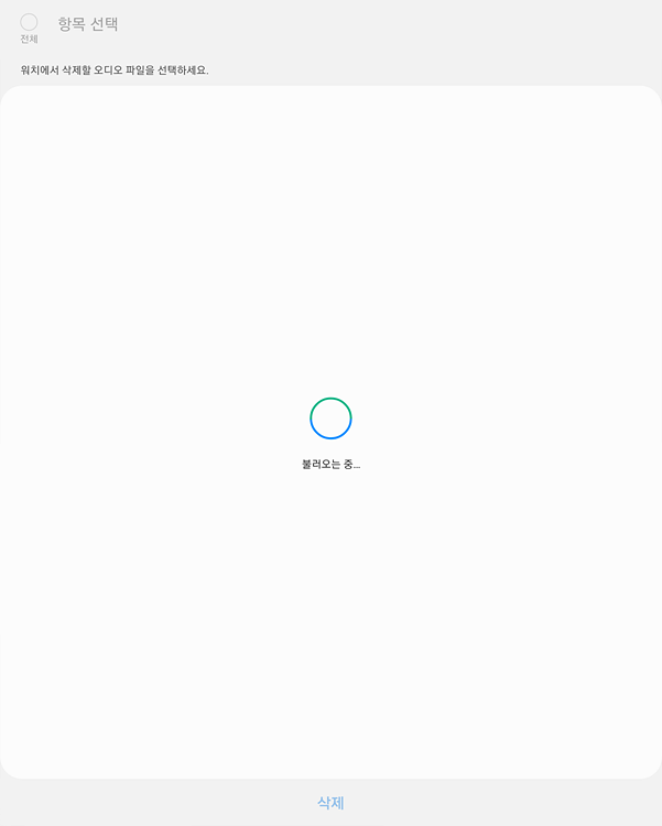 그러면 워치4에서 음악파일을 불러오는데 너무 오래 걸려요. 기분상 최소 5분 정도... 여기서 삭제도 가능하지만, 삭제를 하려면 다시 읽는 도중에 잠시 봐야 합니다.