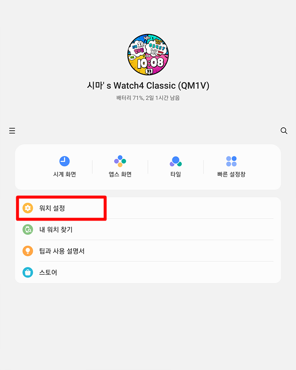 휴대 전화와 워치 4가 블루투스로 연결되어 있으면 이 화면이 표시되어 있습니다.워치 설정을 눌러줍시다.