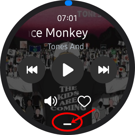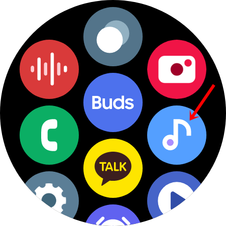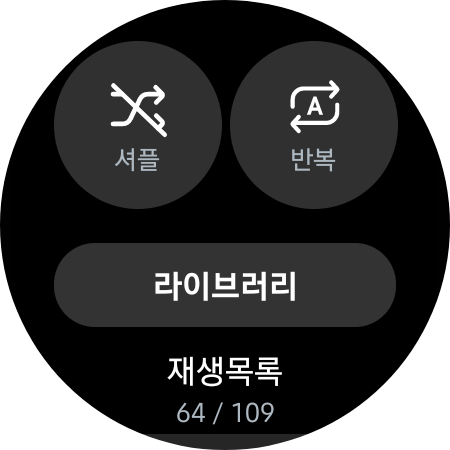 워치 4화면 하단에서 위로 끌어올리면 이런 화면이 나타납니다.화살표 뮤직 플레이어를 눌러줍시다