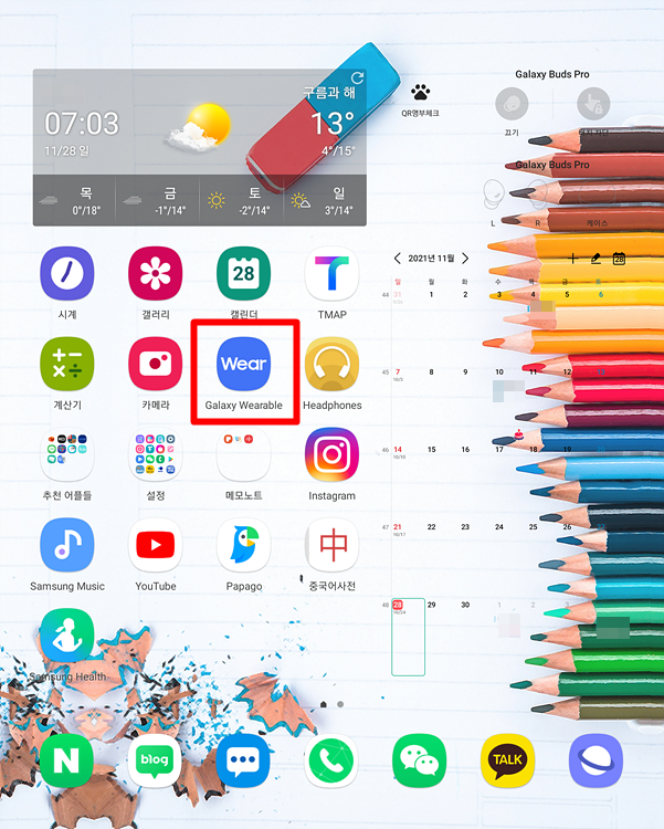 휴대전화에 설치된 갤럭시 워너블 앱을 눌러줘요.