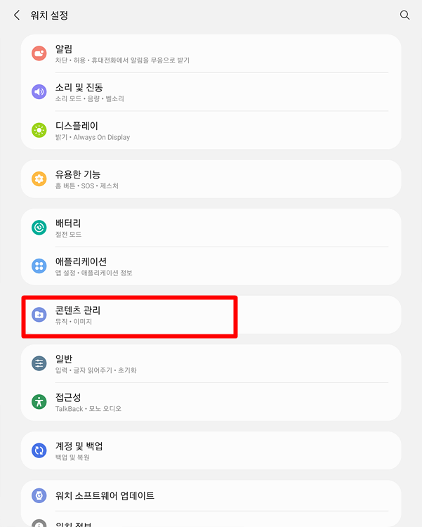 콘텐츠 관리를 클릭합시다.