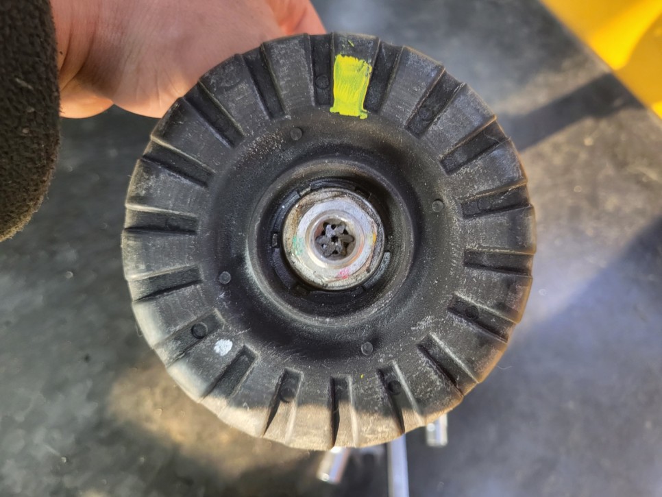 마운트 교체 후 유격, 소음 감소 마운트 교체 전 테스트한 것처럼 바퀴를 상하로 돌려보면 유격이 사라지고 움직이지 않는 것을 확인할 수 있습니다.