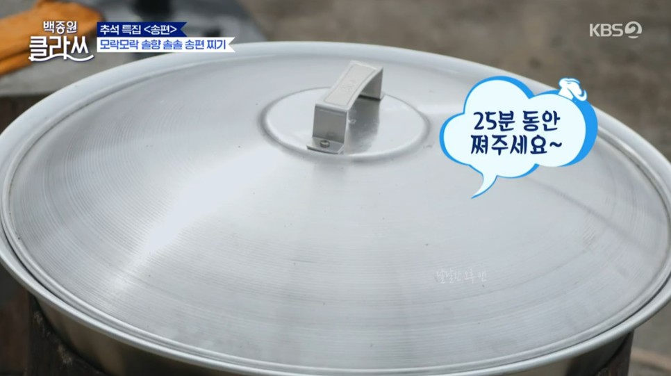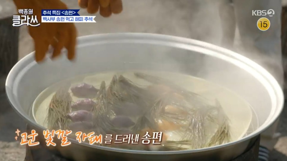 솔잎을 씌우고 뚜껑을 닫고 2-5분 정도 쪄야 완성