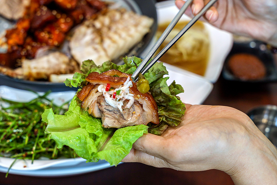 '연속적으로 쌈과 배추를 경험했는데 그렇게 무겁지 않을 정도로 쫄깃쫄깃한 맛보다 단맛이 나서 깨끗이 씻어주기도 했어요.