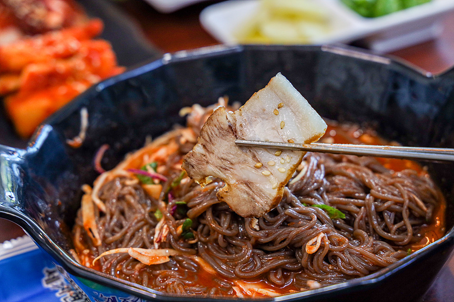 마지막으로 제주 모슬포 맛집 막국수를 먹어봤습니다빨간 것이 다림질이 되어 있고, 잘 섞어 보면 매운 맛이 흔들립니다.
