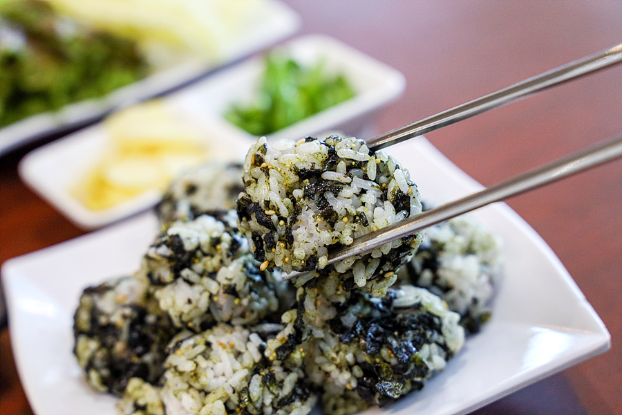 그 뒤 제주 모슬포 맛집 주먹밥을 먹었는데 김이 붙어 있으면 풍성하더라고요.위에 참깨를 뿌려주시니까 고소함이 묻어나더라고요