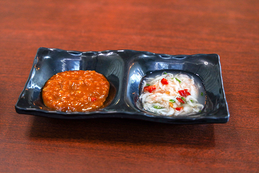 일단 양념장을 젓가락 끝으로 쫙 찍어서 맛을 봤어요.둘 다 맛이 진하고 고소하고 짜고 취향에 딱 맞았습니다.
