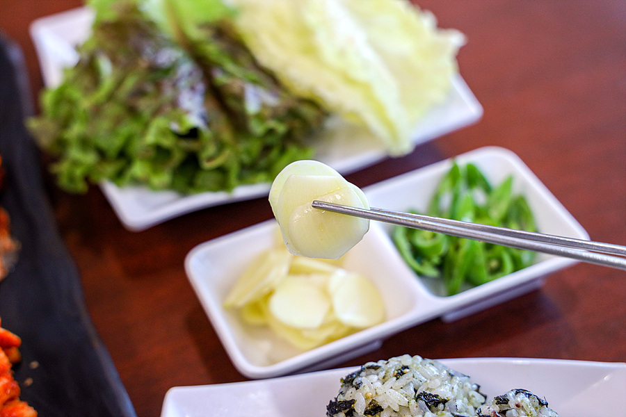 그중에서 쌈장을 먹을 때는 마늘을 더해봤습니다시린 맛이 더해지기 때문에 확실히 몸풀기 차원에서 괜찮을 것 같습니다.