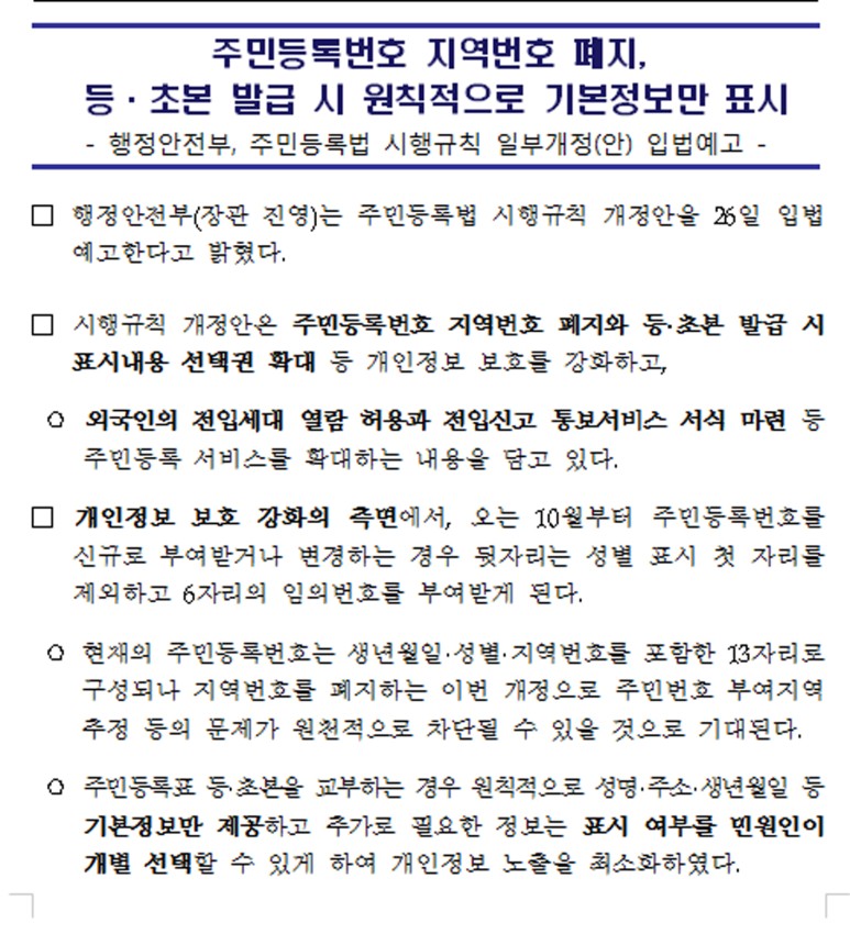 자세한 사항은 행정안전부 주민과 사무관 문의*담당 : 주민과 박주언(044-205-3142)