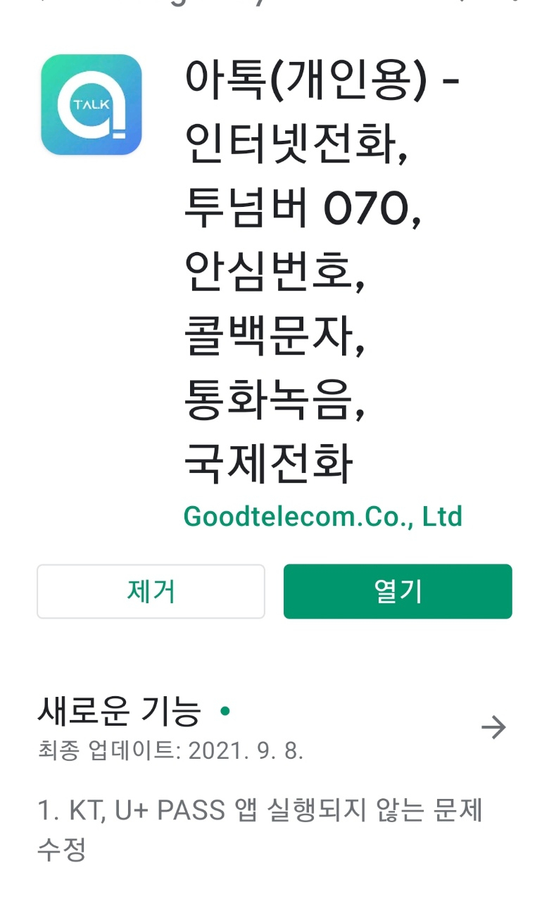 아톡에서는 휴대폰 앱만 설치하면 070 번호를 받을 수 있으므로 국제적으로 이용할 수 있습니다.앱을 검색하여 실행합니다.