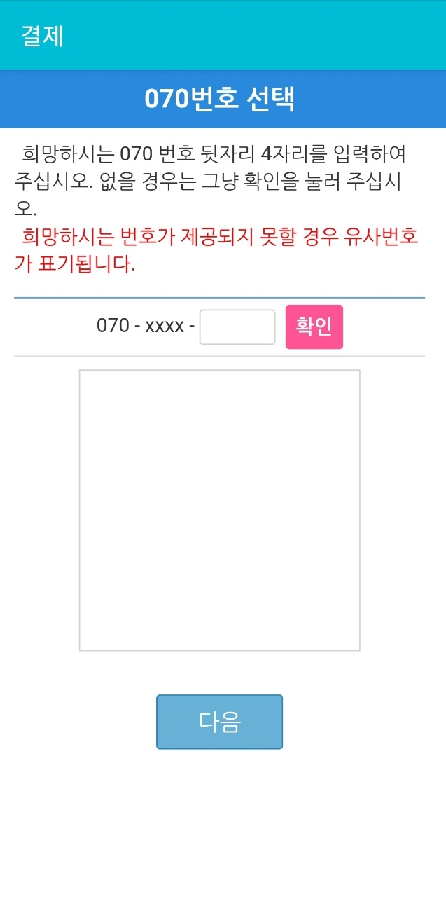 회원가입 절차가 끝나면 A-TALK로 돌아가 로그인 후 070번호를 작성합니다.지정한 번호가 사용 중이라면 사용 가능한 번호가 표시되어 그 중에서 하나를 선택합니다.