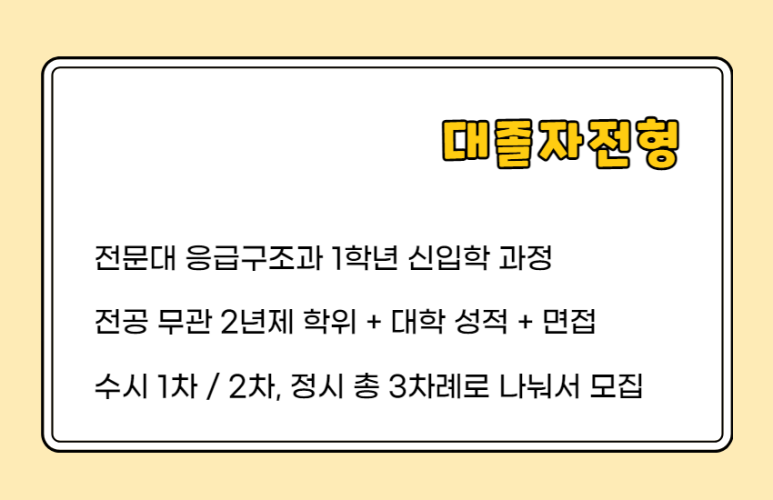 대졸자 전형 혹은 특별전형으로 불리는 이 전형은 전문대에 1학년으로 신입학하는 과정이다.