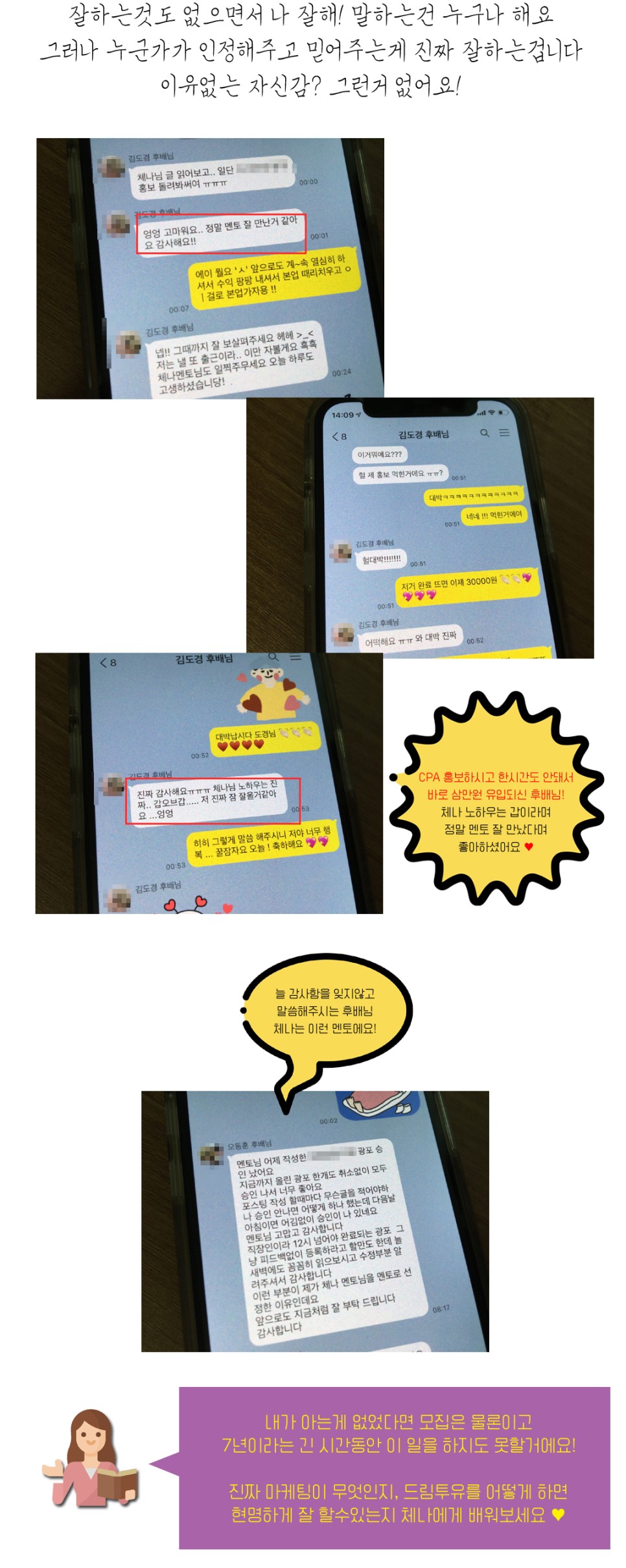 제대로 된 일을 하기 위해서 위해서는 정말 든든한 회사를 만나는 것도 중요하지만 제가 겪은 바로는 좋은 멘토가 굉장히 중요합니다 그냥 아무나 골라서 한다기보다는 조금만 검색해도 많은 분들이 활동한다는 것을 알 수 있습니다.그래서 꼼꼼히 잘 본 다음에 나와 잘 맞을 거라는 사람과 시작을 하시면 됩니다.
