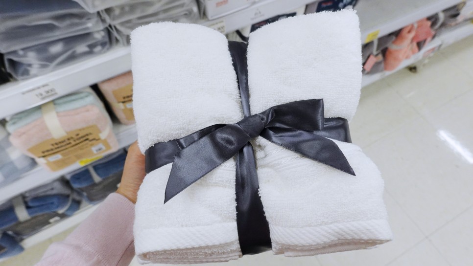 홈플러스 시그니처 소프트 세면타올 한 장으로도 판매 중이었는데 5P묶음 상품이 더 저렴해서 5P묶음 9900원 상품을 구매했습니다 별거 아닌데 리본으로 묶여있는 포장이 예뻐서 괜히 선물받은 것 같아서 좋았어요^^ 현실은 빨리 집에 가서 수건 빨아야하는데 ㅋㅋㅋ