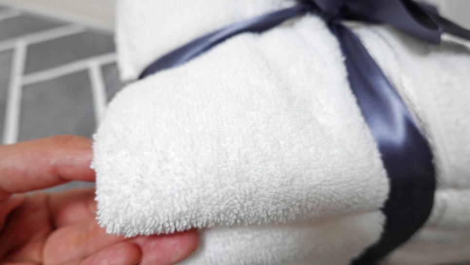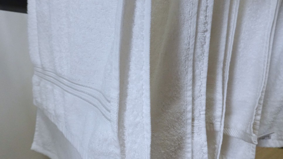 면 100%이며 팽이 공정을 거친 고급 면사를 사용하여 먼지 없는 수건, 트렌디한 컬러의 수건에 모던하고 세련된 욕실 분위기를 연출한다고 쓰여있는데 매장에 회색과 파스텔톤의 컬러 타올도 있었는데, 저는 모두 화이트 색상으로 묶음 구매를 했습니다.