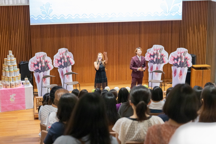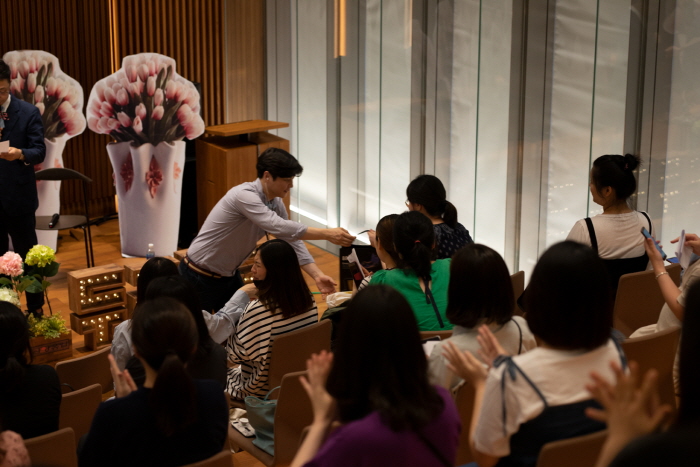3부에서는 힐링 뮤지컬 공연팀인 뮬럽 분들이 뮤지컬 지킬 앤 하이드의 지금 한순간 디즈니 애니메이션 알라딘의 주제곡과 미녀와 야수의 Beauty and The Beast를 불러주셨는데요. 마지막으로 예비부모님이 가장 기다리시고 있던 경품 추첨 시간을 가졌습니다. 먼저 말씀드린 다양한 경품을 골고루 임산부에게 전달해 드리고, 사이즈가 크고 무거운 경품은 택배로 보내드리는 센스! 아쉽게도 경품에 당첨되지 않은 분께는 소정의 경품을 드립니다. 이번 설렘 1964 임산부 교실은 예비 산모님들이 그간 궁금하고 혼란스러워 했던 출산 육아의 상식에 대해 토론하고 육아 선배들의 노하우를 들어볼 수 있었던 의미 있는 시간이었습니다.