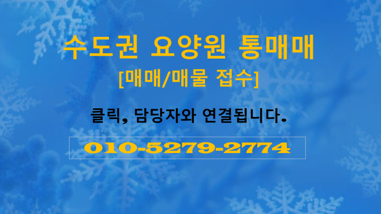 안녕하세요. 오늘은 #부통령님께서 수도권에 위치한 요양원 매매 매물을 소개드리겠습니다. 매매물건과 관계가 없습니다. 요양병원을 운영하는 병원의 원장님은 아시겠지만 요양병원, 요양원 등은 공개적으로 홍보하면서 사고팔 수 없고 외부 사진이나 내부 사진, 동영상 등을 공유할 수 없습니다.