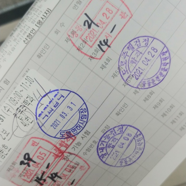 결론부터 말하자면 필기 당연히 한 번만에 패스, 기능 최초로 실격되어 두 번만에 합격, 도로주행 한 번만에 합격했다. 3월 중순에 등록했는데 그때는 아직 방학 때 등록하고 면허 따는 학생들이 많았던 시기여서 한 달 이상 걸렸다.