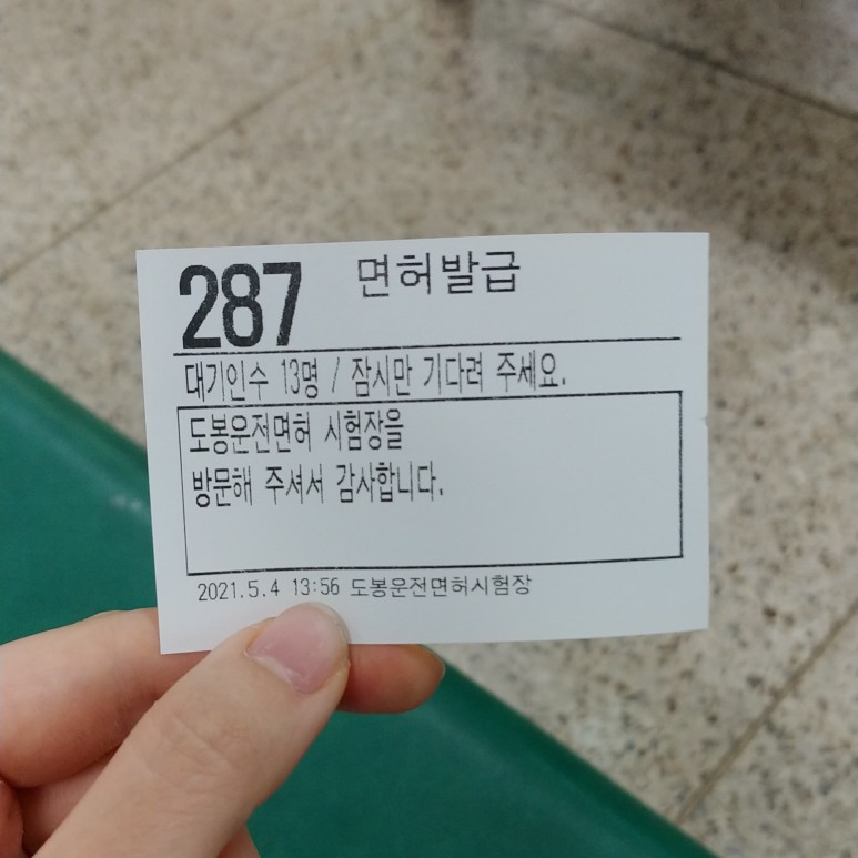 아무튼 합격 도장 받아라~ 면허증 발급받으러 가는 것도 낯설고 도로주행 합격하고 일주일 뒤에 갔어... 대기인원 13명이었지만 곧바로 빠져 발급신청을 하면 약 5분 뒤에 면허증이 나온다. 뒷면 영문이라 만원 디자인이 마음에 안 들어 지금까지 면허 취득기였고... 이틀 뒤에 친구들이랑 단양 가서 소카를 빌리기로 했는데 과연 운전을 하게 될까?하지만 아직 차를 사서 운전하고 싶은 마음은 없다. 무인 자동차의 상용화를 손꼽아 기다리고 있는 사람