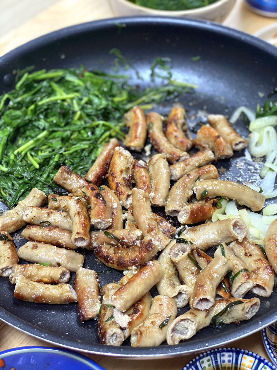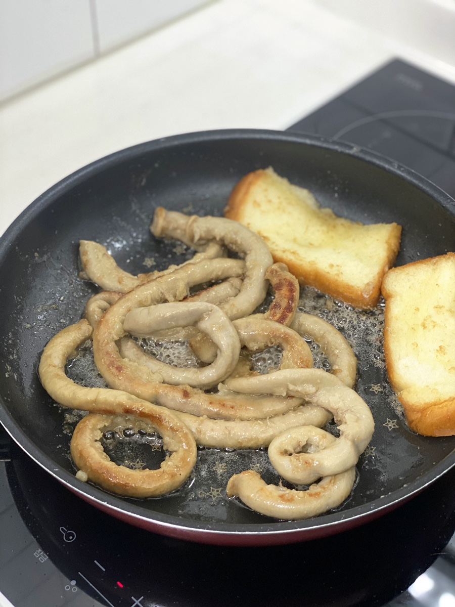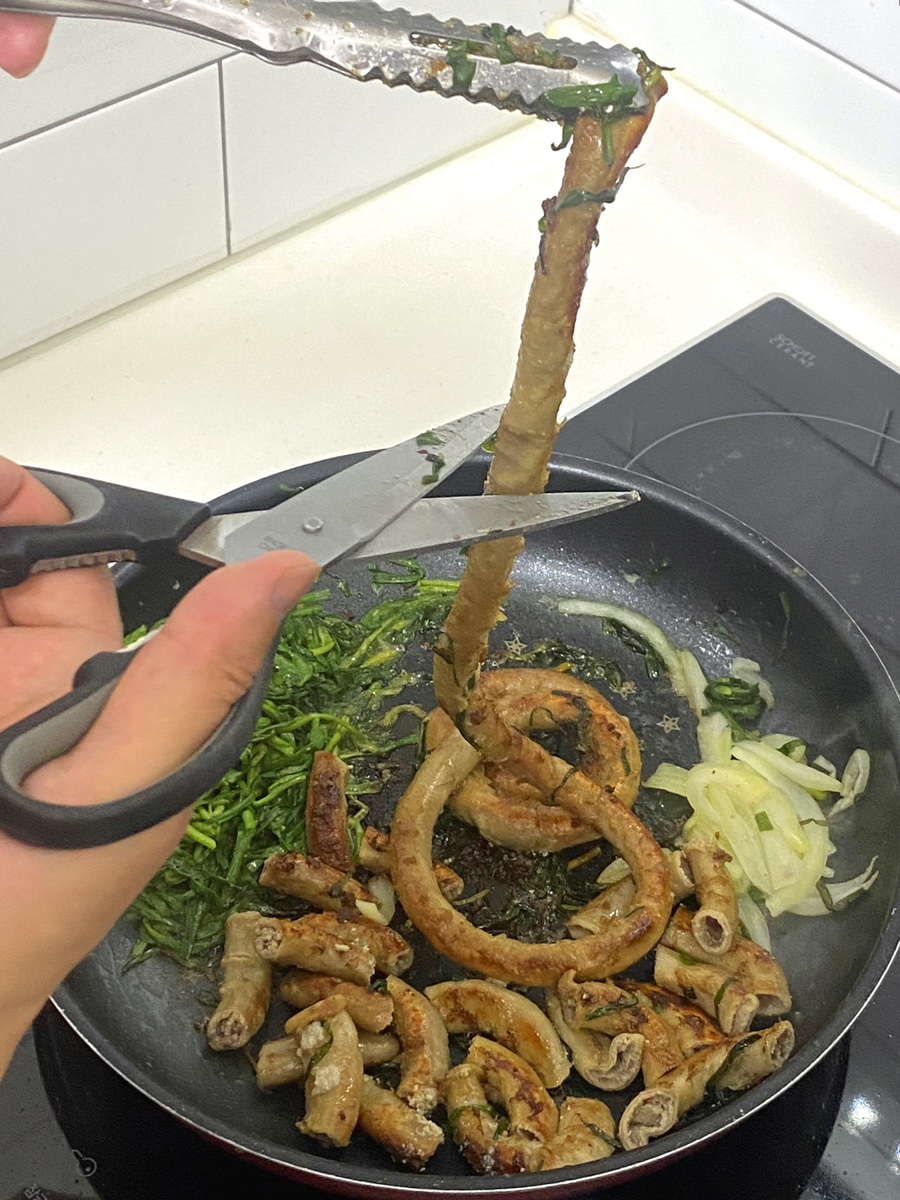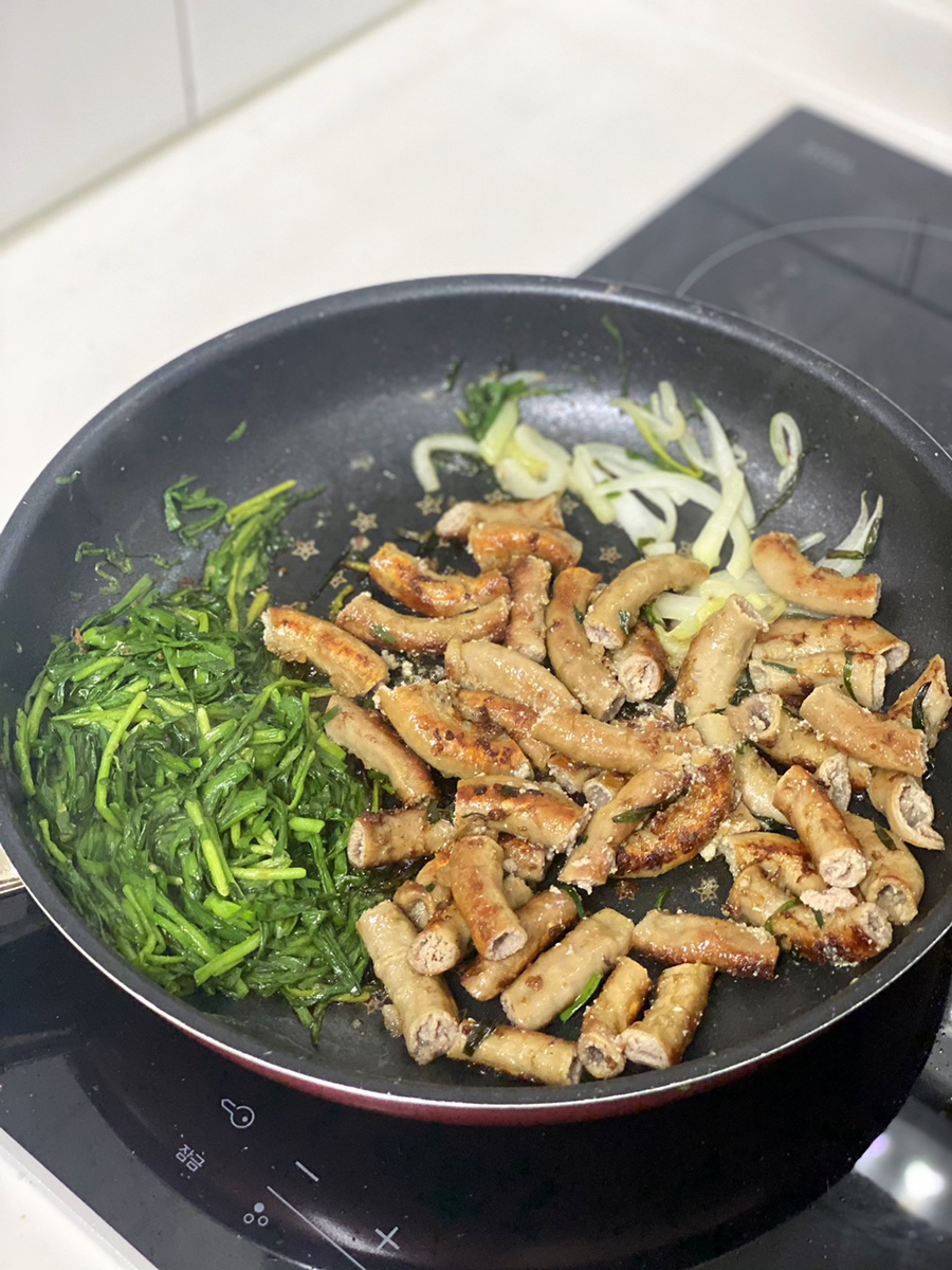 평일 스트레스 풀고 싶은 날 얼려서 보관하고 있던 소 팔십 소곱창을 꺼내서 조기퇴근했더니 물렁물렁 해동이 잘 되더라고요~ 상온이나 냉수 또는 냉장해동하라고 되어있어 뜨거운 물에 냉동하면 냄새가 날 수 있어요!!!! 어머! 대단하네요. 여러가지 부웅!!두 봉지도 꺼내놨는데 다 먹을수 있을까 하는 생각은 아주 쓸데없는 고민이었음을 ㅋㅋㅋㅋㅋㅋ 불도 심하게 올려서 소곱창집에서 해주듯 뱅글뱅글 나무결 따라 소곱창을 팬들에게 둘러서 주꼬양 파닌닉 때려넣고 보글보글~~~~ 제대로 먹고 싶어서 기름을 닦지 않고 거의 소의 곱창 기름에 소의 곱창을 튀겼다고 보시면 됩니다. 익을 때 부추 한 줌 넣고 지글지글 소리부터 미쳤어 정말 쫄깃쫄깃해서 큼직큼직하게 곱창을 썰어서 마지막에 볶아주고요 '꺄악', '꺄악', '꺄악', '꺄악', '꺄악', '꺄악', '꺄악', '꺄악' 남편 고생했으니까 맥주 한 잔 해요! 집에서 소곱창을 굽다니 크하하항복한다중말.< 잘 구워진 소곱창구이 한장 부추 한장 집어서 쩝쩝~~~~~~~~~~~~~~~~~~ 겉은 바삭바삭하고 속은 촉촉해서 쭈글쭈글해서 힘들어.