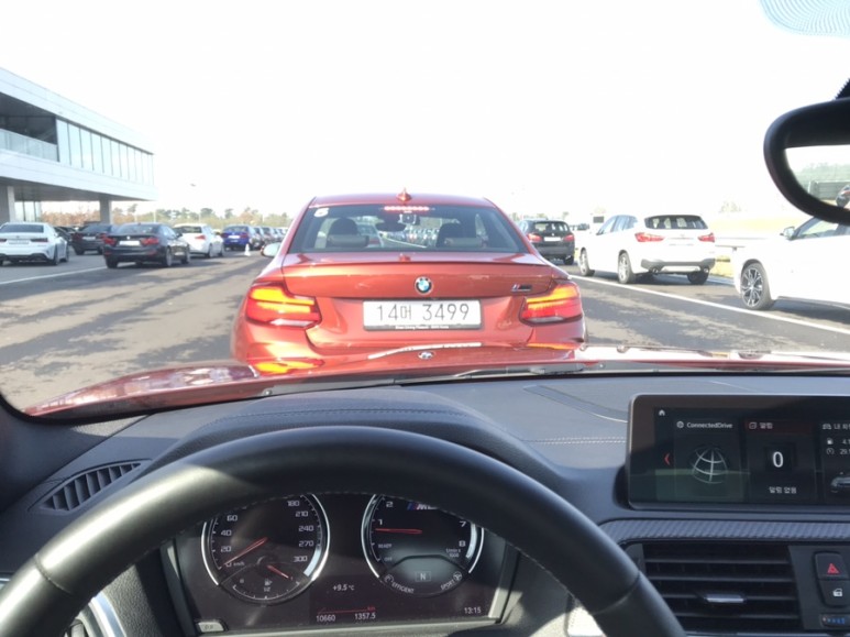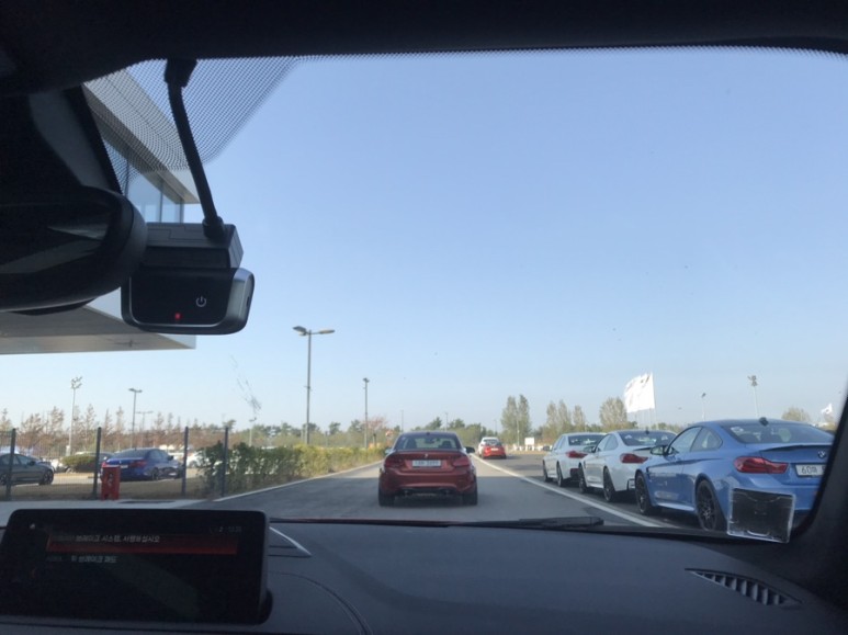 머리 공간은 주먹 하나 정도가 들어간다 만큼, 브레이크 페달을 꽉 밟아도 무릎이 구부러지는 만큼, 양팔을 쭉 뻗었을 때 손목이 스티어링 휠에 닿는 만큼 조정하는 것이 포인트! BMW M은 패들 시프트모어 물론, 드라이빙 모드도 스포츠, M1, 2로 셋팅을 할 수 있습니다.제가 여러 가지를 들었습니다만, 오늘은 그대로 D에 두고 운전하기로 약속했습니다. www 서킷 입장 전 간략 단순히 ABS 브레이킹 테스트와 슬라롬 구간 연습. 자동차의 핸들링감을 익히기 위한 연습이었지만, 이미 인제에서 최강의 슬라롬과 짐카나를 체험한 적이 있어 조금 지루했습니다. 그러면 몸풀기를 끝내고 이제 본격적으로 트랙에 들어갑니다 트랙은 2.6km이고 많이 타시는 분들은 5-6바퀴, 적게 타시는 분들은 3-4바퀴 정도 돈대요. 총 주행 시간은 30분이지만, 들어가고 나서 나오는 시간을 빼면 약 10분 정도?