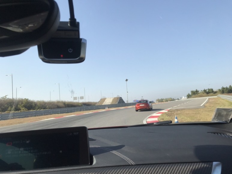 650m 직선 코스에서 최대 속도 200km 이상을 밟아봤습니다 강력한 힘을 느낄 수 있었던 코스 그리고 7개의 작은 코너가 이어서 조금 울림이 있었죠 서킷 주행을 마치고 이것저것 질문하는 모습.다른 차량들도 체험해 보고 싶은 마음은 굴뚝같습니다. 후후후