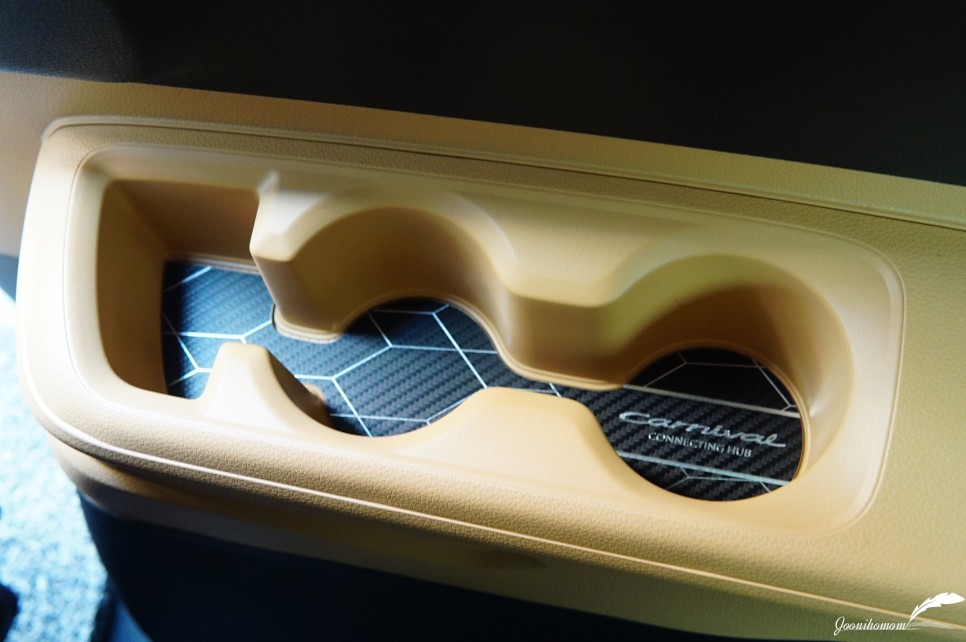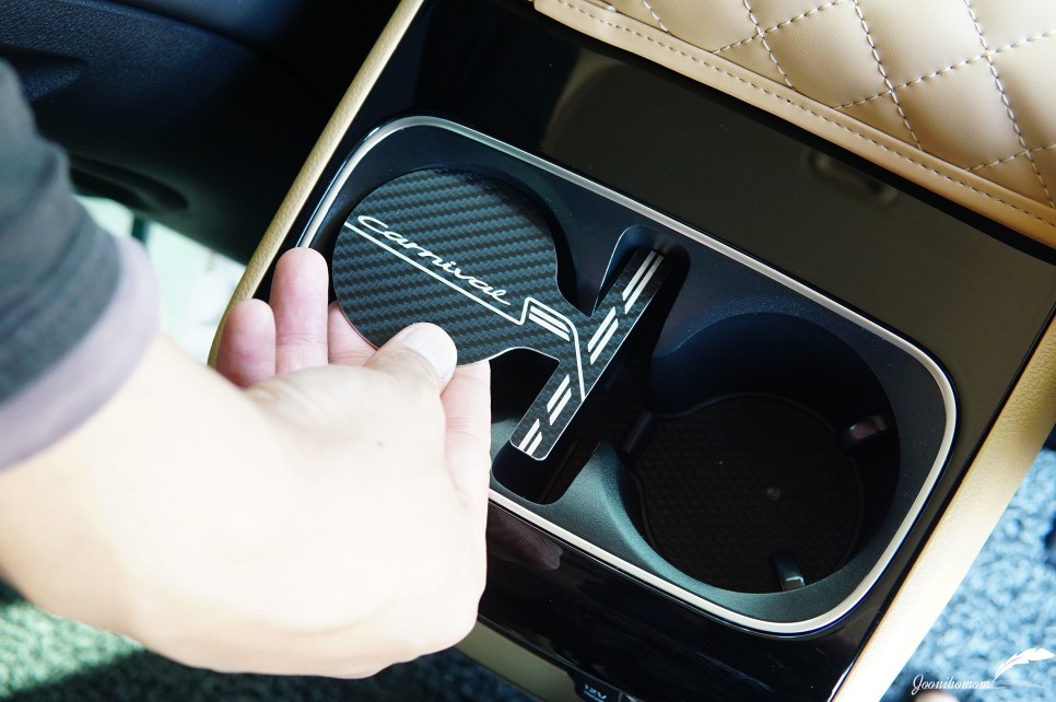 아이들과 함께 차를 타고 이동할 때 많이 쓰이는 부분인 만큼 스크래치 방지에 큰 도움이 되고 실내 분위기를 고급스럽게 높여주는 인테리어 몰딩 제품이라 탄탄하게 장착해 멋스럽네요 ㅋㅋ 3열 컵홀더 플레이트 3열에 있는 좌측과 우측 모두에서 장착이 가능한 제품입니다.순정보다 더 순정같은 빈틈없는 디자인과 퀄리티로 4세대 카니발 튜닝용품으로 적극 추천합니다