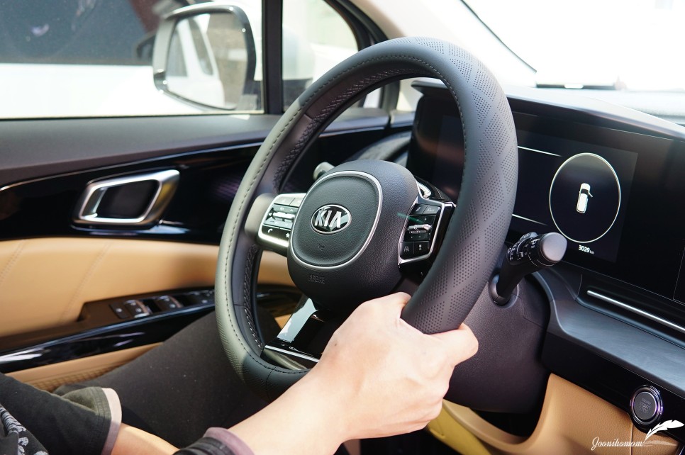 장거리 운전을 하면 손에 땀이 많아 핸들 조작시 미끄러질 수 있지만 정밀한 구멍으로 통기성이 높아 미끄러지지 않고 사용할 수 있어 중후하고 그립감이 좋아 안전감 있는 주행을 도와주는 카프트 핸들 커버 입니다 내부 실내바닥에 깔려있는 제품도 같은 쇼핑몰 제품이지만 좋은 퀄리티로 앞으로 다양한 4세대 카니발 튜닝용품을 주문해 볼 예정입니다. 차량 내부의 분위기와 퀄리티를 높여주는 핸들 커버와 카본 메탈 컵 홀더 외에 다양한 아이템이 더욱 럭셔리해지고 만족합니다.^