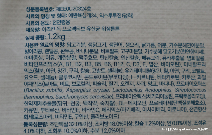 평소 같으면 마음 같아서는 한참 꽃구경을 할 때지만 이런저런 일들로 인해 쉽게 움직이지 못하고 있습니다.그래서 동네 산책만 다니고 있는데요.올해부터 마음 체력이 예전보다 강하지 않다는 느낌을 받고 있어요.그도 그럴 것이 5월이면 이제 6살이거든요그래서 집에 있을 때도 그렇지만 활동을 하는 산책 시간에는 마음을 평소보다 더 잘 관찰하고 있습니다.걸음걸이도 유심히 보고 또 대변 상태를 보면서 매일 체크하고 있습니다. 마음은 평소에 관절사료를 급여하고 있는데 조금 전부터 말랑말랑한 변을 보고 있거든요그래서 이번에는 이즈 캔덕프로액티브 유산균 위장 튼튼 사료로 바꿔봤습니다몇 번이나 말했지만, 항상 변의 상태를 체크하지 않으면 안 됩니다.배고파~ 배고파... 말을 할 수 없기 때문에 보호자가 빨리 캐치하기 위해서는 이 방법이 가장 좋은 것 같습니다.뭔가 어색하다 싶으면 사진을 찍어놨다가 나중에 병원에 가게되면 보여드리기도 해요.설명한 것보다 더 빨리 잘 이용하는 방법입니다. 책임 있는 사랑을 전하는 반려동물 푸드!라고 하는 슬로건을 내건 이즈한 푸드는, 많은 반려자에게 신뢰받아 주고 있는 푸드입니다.물론 저도 그렇습니다. 관절이나 체중 관리, 피모 관리까지 할 수 있는 다양한 음식이 있어서 가끔 바꾸면서 먹여준다고 합니다. 이즈 캔독프로액티브 유산균 위장톤톤톤은 보시는 바와 같이 소화와 영양소 흡수에 최적화되어 소화와 위장관 건강에 도움을 주는 반려견 사료입니다.기본적으로 무곡물 설계! 즉 옥수수, 쌀, 밀과 같은 곡류에 의한 알레르기 반응을 감소시켜 탄수화물 때문에 체중이 증가하는 것을 예방하고 곡물류 대신 슈퍼푸드를 첨가하여 GI지수(혈당지수)가 낮아 혈당관리에 도움을 주는 그레인프리 사료입니다. 원료는 닭고기라고 적혀있으나 식용등급인 뼈 없는 국내산 닭고기를 주원료로 하여 영양손실을 최소화하고 기호성을 높여 신선함을 유지합니다.생육과 가수분해 단백질원을 주원료로 하여 소화율을 높이고 건강에 도움을 줍니다.그리고 장내 유익균 활성화와 장 건강에 도움을 주는 프로바이오틱스 및 허브추출물, 유기산, 식이섬유가 함유되어 있습니다.장세포의 에너지원으로 작용하여 손상된 장세포의 재생과 회복을 돕고 소화흡수와 장건강을 돕는 낙산이 포함되어 있습니다. 이즈의 사료 뒷면에, 상세하게 급여 권장량과 사료의 교환 방법이 쓰여져 있습니다.체중이 급할 경우 교체 시 갑자기 바꾸면 소화에 영향을 주고 설사나 구토를 할 수 있으므로 예전에 마시던 것과 조금씩 섞어주며 항상 깨끗한 물을 마실 수 있도록 준비합니다. 이즈칸 도그프로액티브 유산균 위장 튼튼 1.2Kg 이즈 관의 개 사료를 개봉했더니 합계 1.2킬로그램들이, 200그램씩의 개별 포장으로 6봉지가 들어 있었습니다.마음의 경우는 대형견이라 너무 적당한 양이 들어 있어 주기에 매우 편합니다. 마음에 주기 전에 접시에 흘려놓고 냄새랑 질감 같은 걸 살펴봤는데아주 가까이에서 냄새를 맡았는데, 사료 비린내가 전혀 나지 않았어요.비스킷 냄새도 조금 나는 것 같고 거부감이 전혀 느껴지지 않더라고요 평소에 먹이를 줄 때 방에서 나오지 않거나 먹어달라고 할 때 겨우 나오는데 이즈칸 먹이를 접시에 담아놓고 먹으려고 갑자기 고개를 내밀었거든요.몸집이 큰 대형견이지만 우리는 항상 식욕이 없어요.저 같은 짝짝이 냄새를 맡고 나온 걸까요? 뭐 이렇게 잘 먹으니까 변이 아무래도 적당히 먹이고 싶네요와그작 하는 소리에 주방에 있던 언니도 가까이 와서 구경했어요.맛있게 먹는 모습을 보니 제 기분이 너무 좋네요. 너무 맛있게 먹어서 마음이 접시에 있던 먹이를 한 움큼 떠서 다시 봤어요.부드럽고 아주 바삭바삭하고 잘 구워진 느낌? 먹이 알의 크기 또한 씹기 쉬운 크기입니다.너무 크지도 작지도 않아서 강아지들이 좋아할 것 같아요 사실 기능성 사료이기 때문에 마음에 안 들면 어떡하지 궁금했는데 기호성도 너무 좋으니까 정말 다행이라는 생각이 들었습니다. 아침에 눈을 뜨자마자 제일 먼저 하는 일이 마음 산책입니다.100% 야외 배변이지만 5~6시간 두고 나옵니다.밤에는 더 장시간 나올 수 없기 때문에 아침에 부지런히 떨립니다.상쾌한 공기를 마시며 산책을 시작합니다.