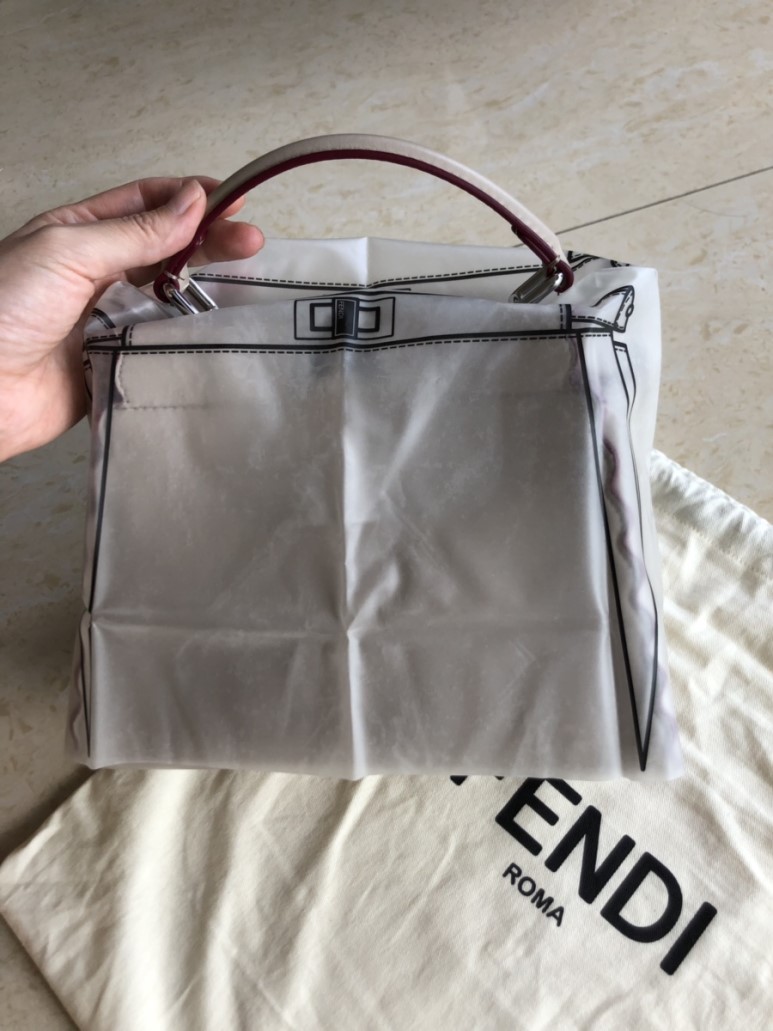 펜디에서 구입한 제품들을 모아놓고 신나는 샷. 보는 것만으로도 깁니가 좋아 ㅋㅋㅋㅋㅋㅋㅋㅋ 콕콕 고여 있다. 너의 예쁜 모습을 보라구~ 핸들과 스트랩에는 오염 방지를 위해 감겨져 있다. 설명서, 더스트백, 아, 다른 브랜드에서는 볼 수 없었던...우천시에는 가방에 씌울 우비를 주었다. 우비 씌운 사진은 밑에 소개하기로..
