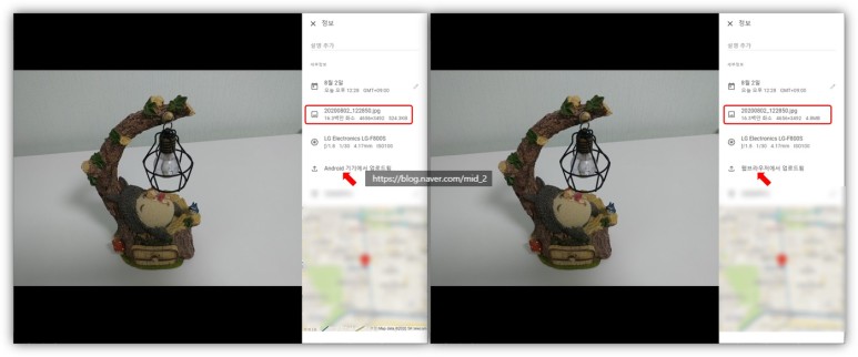스마트폰 앱으로의 고화질 백업 옵션 마지막으로, 사진 업 로드시에 영향을 미치는 조건을 생각해 보자.1. 소프트웨어 : 스마트폰 (앱) vs PC (브라우저) 2. 연결 환경 : LTE와 같은 이동통신 vs. Wi-Fi와 같은 인터넷 접속 3. 백업 방법 : 동기화 자동 백업 vs. 수동 백업 (덧붙여서 나는 iPhone, 맥이 아닌 안드로이드, 윈도 사용자이다.) 결론부터 말하면무제한 고화질 백업 옵션으로 최대 퀄리티로 백업하려면 PC 웹 브라우저에서 업로드 한다.미드오브 그러면, 사진 샘플 하나를 가지고 이야기를 하자.